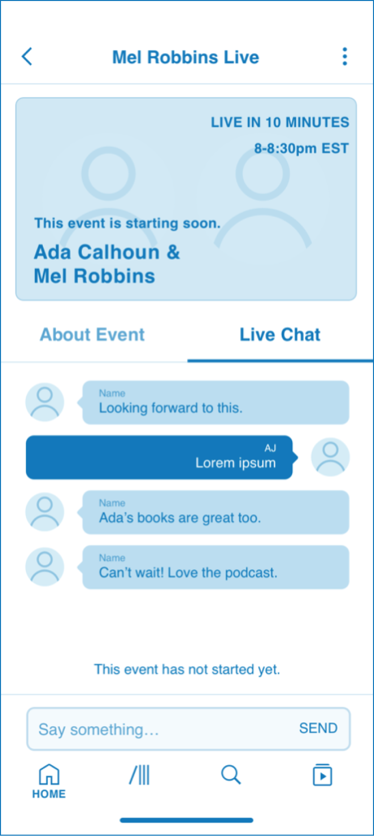 I was brought in to redesign the experience to be more aligned with what our listeners wanted. I took the design and reimagined what it means to actually connect through a live video experience. Through rounds of research and designs, I showed a test group of our listeners a new interactive Audible Live, intended to have a behind-the-scenes feel.